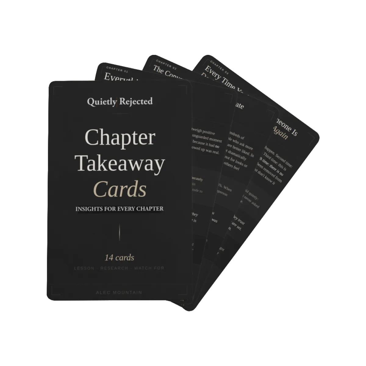 One reference sheet per chapter. Each one distills the core insight and the one behavior to watch for — designed to be saved and revisited whenever you need it. The fastest way to keep what you learned from fading.